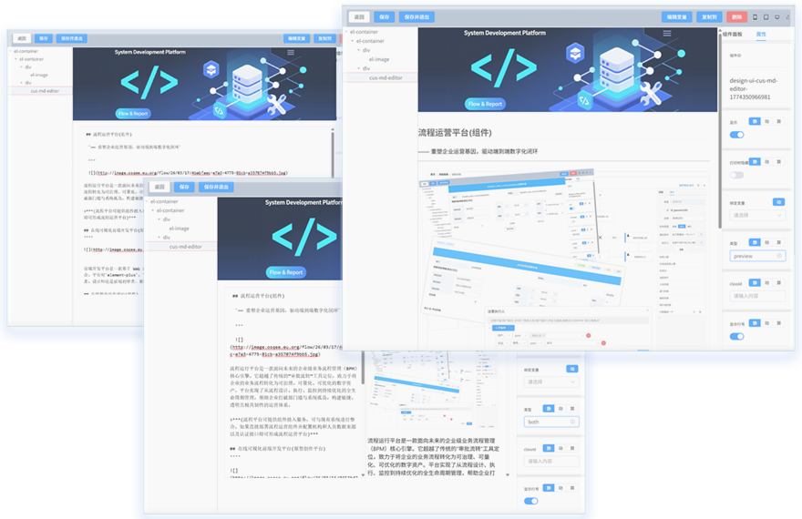前端开发平台是一款基于 Web 的现代化前端可视化开发平台,它将代码编辑、可视化拖拽、实时预览、版本管理和团队协作完美融合。平台对element-plus、threejs和echarts等开源项目进行了集成,提供了易于使用的属性配置方法,无论是专业开发者、设计师还是前端初学者,都能在这里高效创建响应式网站、Web 应用和交互式界面。
